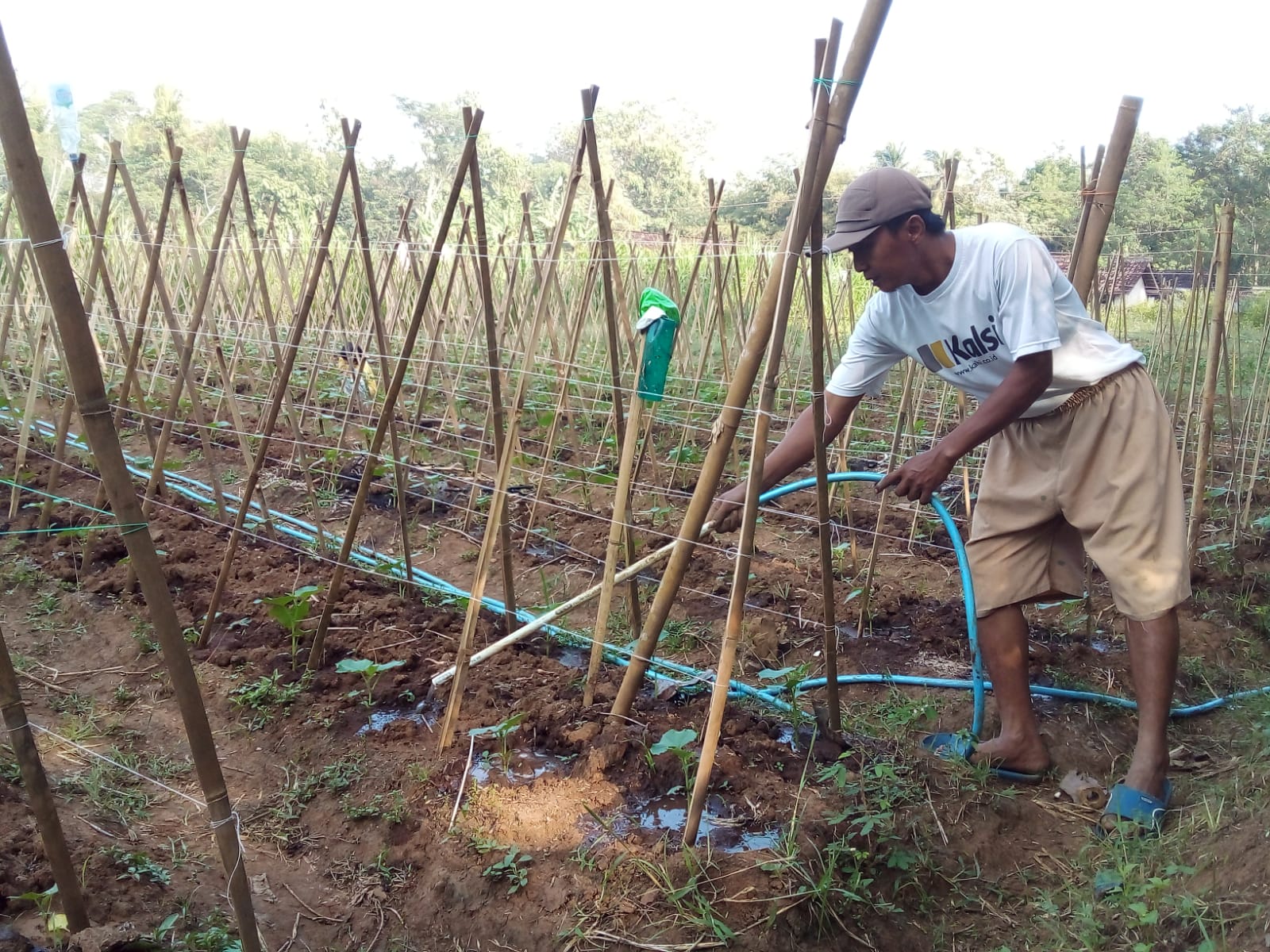 Aris Widodo menanam 600 bibit timun (Foto: Wiradesa)
