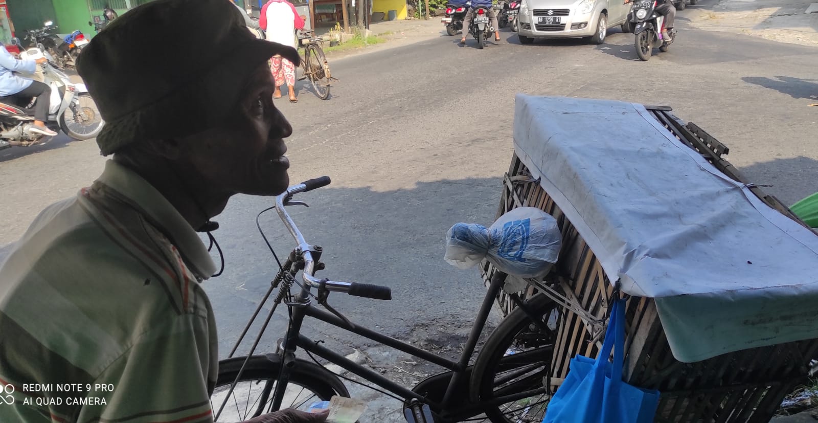 Hampir setiap pagi, Bapak ini duduk di pojok pertigaan Ngipik, Baturetno, Banguntapan, Bantul, Daerah Istimewa Yogyakarta. Dengan sepeda jengki yang dipasangi kronjot terparkir di sisinya, dia terlihat penuh harap menunggu warga yang akan menjual ayam ke pasar.