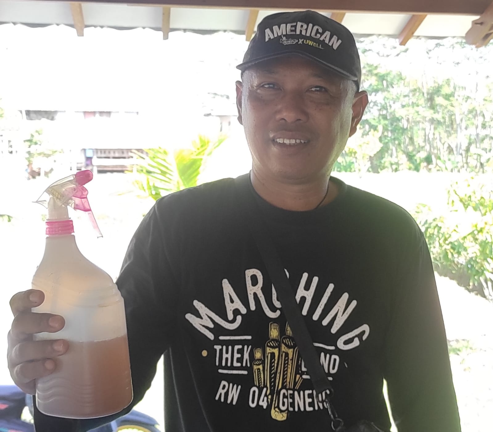 Wahyu Santoso, menunjukkan Booster Organik, ramuannya di Joglo Tani, Jumat (24/4/2026). (Foto: Wiradesa)