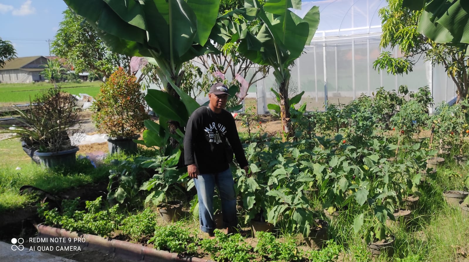 Wahyu Santoso memperlihatkan tanaman sayur, buah, dan bunga yang diberi Booster Organik dari campuran air leri, kulit bawang, dan urine kambing. (Foto: Wiradesa)