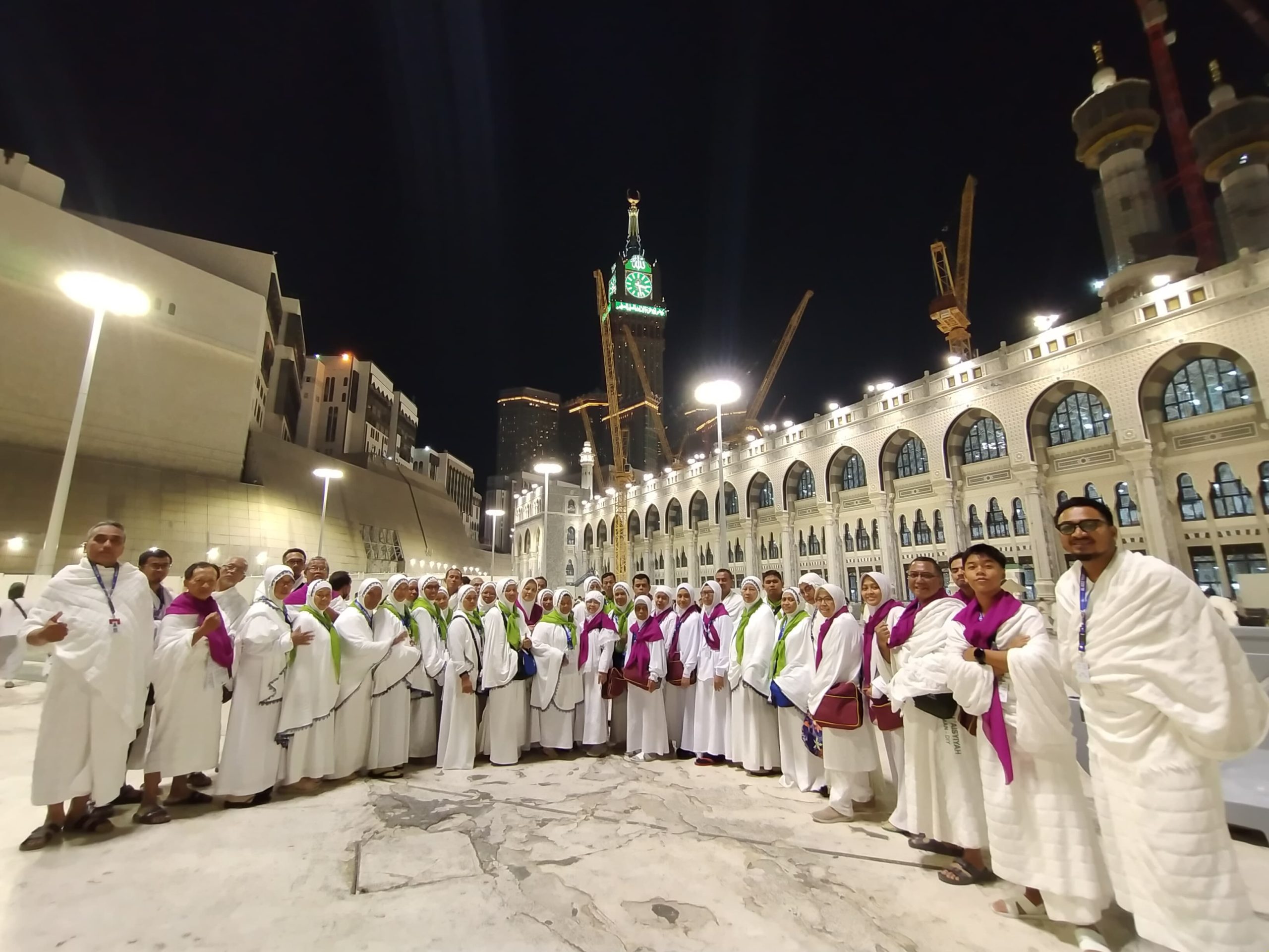 Jamaah umroh Alazis Yogyakarta saat di Masjidil Haram, Kamis (18/1/2024) malam. (Foto: Taufik Ilham)
