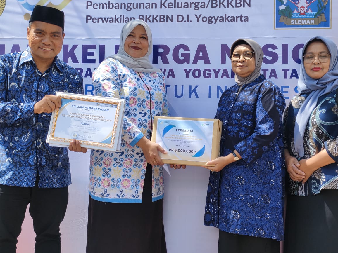 SLEMAN-Prestasi membanggakan kembali diraih Kalurahan Condongcatur yaitu penghargaan juara 1 tingkat nasional untuk Lomba Pantau BKB MU Tahun 2025 dan Juara 1 Kampung KB Condongcatur. Penghargaan diserahkan pada acara Peringatan Hari Keluarga nasional (Harganas) ke-32 bertempat di Pendopo Parasamya Kantor Bupati Sleman, Kamis 17 Juli 2025.