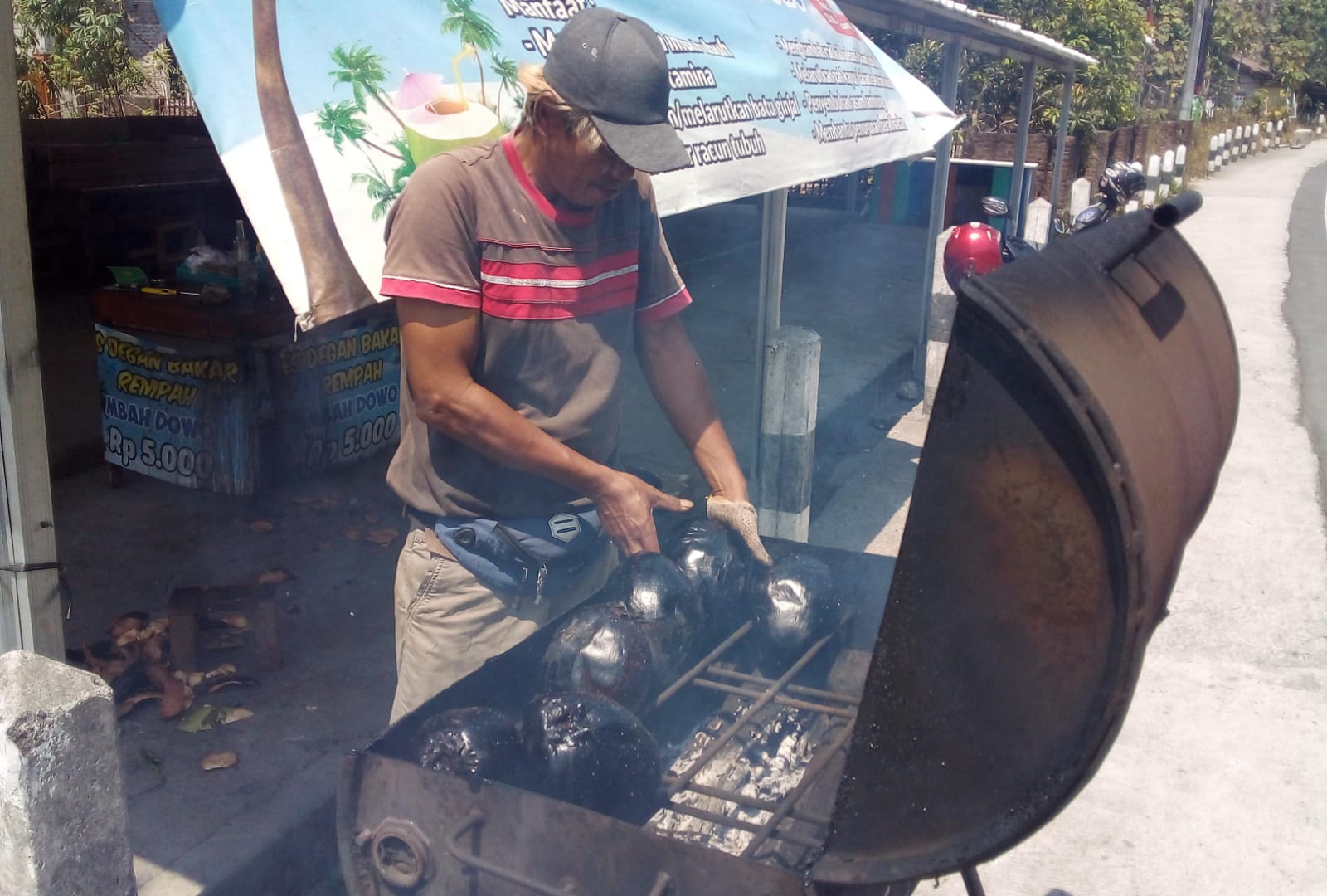 Membuat degan bakar rempah bakar, Ngadiman memasukkan butiran kelapa muda ke dalam oven drum bekas. Pemanasan menggunakan bara tetapi api tidak boleh menyala kuat. Cukup dipanaskan dengan bara api dalam durasi lama. Sumber bara dari kayu kering yang dimasukkan ke dalam bagian bawah drum.