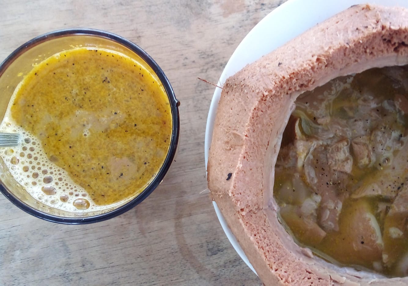 KULONPROGO – Degan bakar plus rempah dan susu madu telur, bila dicicipi, di lidah rasanya kombinasi asam, pedas, hangat, dan aroma rempah yang kuat. Jejak rasa telur ayam kampung mentah yang diaduk tersamarkan rasa pedas jahe merah dan asam jeruk nipis.