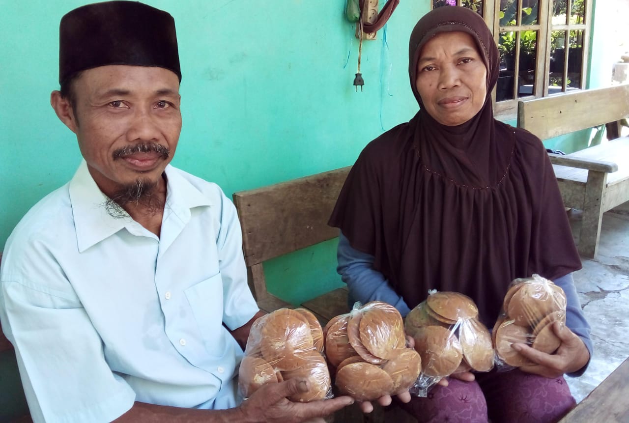 Tumiyo dan Sumini, dengan gula jawa produksinya. (Foto: Wiradesa)