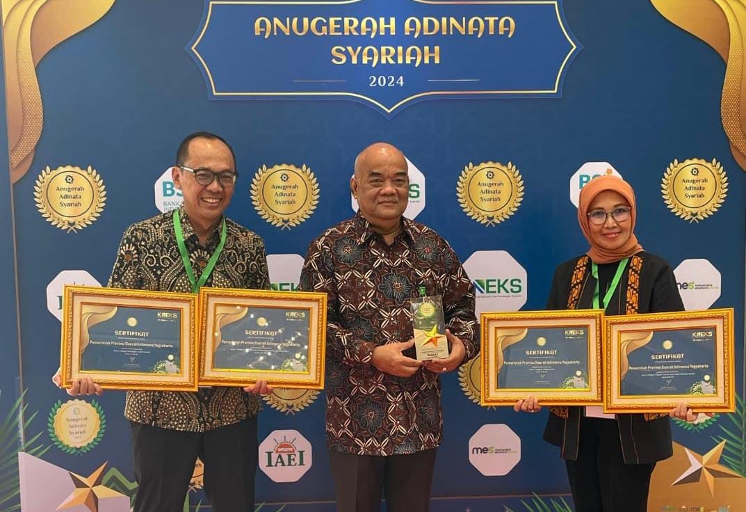 Pemerintah Daerah DIY meraih Anugerah Adinata Syariah 2024 di 5 kategori dari 10 kategori, yaitu Juara 1 Inkubasi Usaha Syariah, Juara 2 Kategori Inovasi Pada Sektor Ekonomi Syariah, Juara 2 Keuangan Sosial Syariah, Juara 2 Industri Halal, dan Juara 5 Pendidikan dan Pemberdayaan Ekonomi Pesantren.