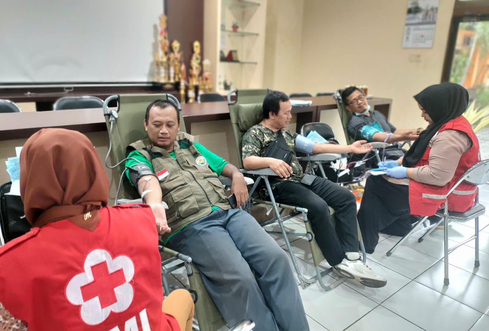 “Pendaftar atau calon pendonor yang hadir 43 orang. Namun yang memenuhi syarat untuk donor 40 orang. Para calon pendonor terlebih dahulu mendaftar dan mengisi blangko kemudian dilakukan skrining oleh petugas PMI Kabupaten Sleman. Menjalani cek tensi dan diperiksa kadar hemoglobin dalam darah. Bagi yang memenuhi persyaratan akan diambil darahnya. Setelah itu mereka mengambil nomor undian dan bisa ditukar macam-macam hadiah hiburan,” jelas Wasana.