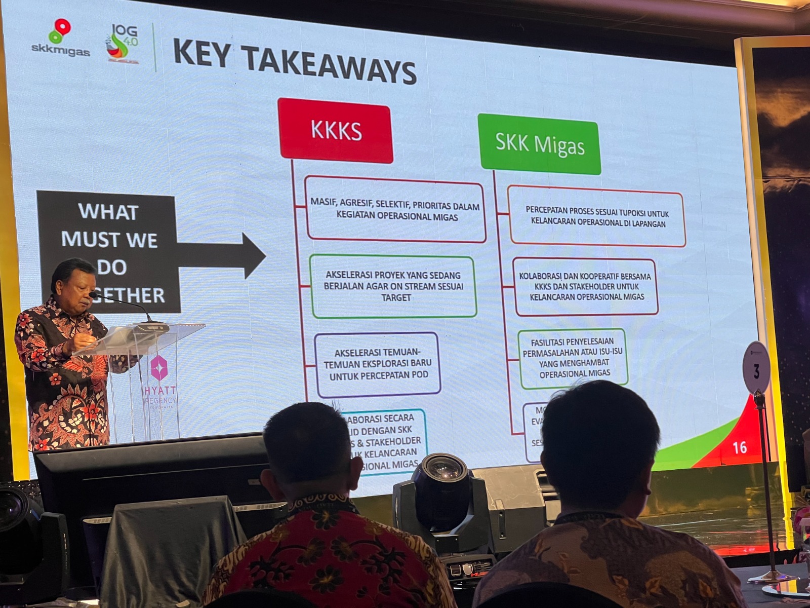 Wakil Kepala SKK Migas Nanang Abdul Manaf yang membuka berharap bahwa para stakeholder yang sektor migas dapat merajut kesepahaman dan saling bersinergi untuk bersama-sama bekerja keras mencapai target produksi minyak 1 juta barel per hari (BOPD) dan produksi gas 12 miliar kaki kubik per hari (BSCFD).