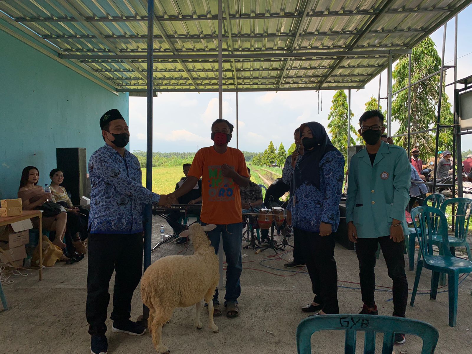 Guna memotivasi masyarakat lebih bersemangat pada acara pengundian aneka doorprize dan hadiah utama dua ekor kambing warga dihibur penampilan orkes dangdut.