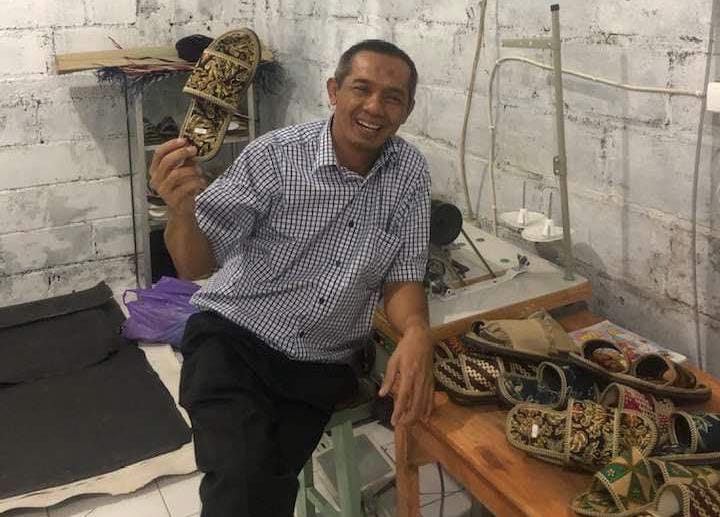 Eko Prayitno mulai tekuni bisnis sandal suvenir. (Foto: Wiradesa)
