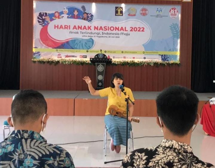 Penegasan ini disampaikan Sylvi Dewajani saat memberikan sambutan pada kunjungannya di Lembaga Pembinaan Khusus Anak (LPKA) Kelas II Yogyakarta, Kamis 28 Juli 2022. KPAID Kota Yogyakarta bersama Rumah Dongeng Mentari (RDM) merayakan Hari Anak Nasional 2022 di LPKA Kelas II Yogyakarta.