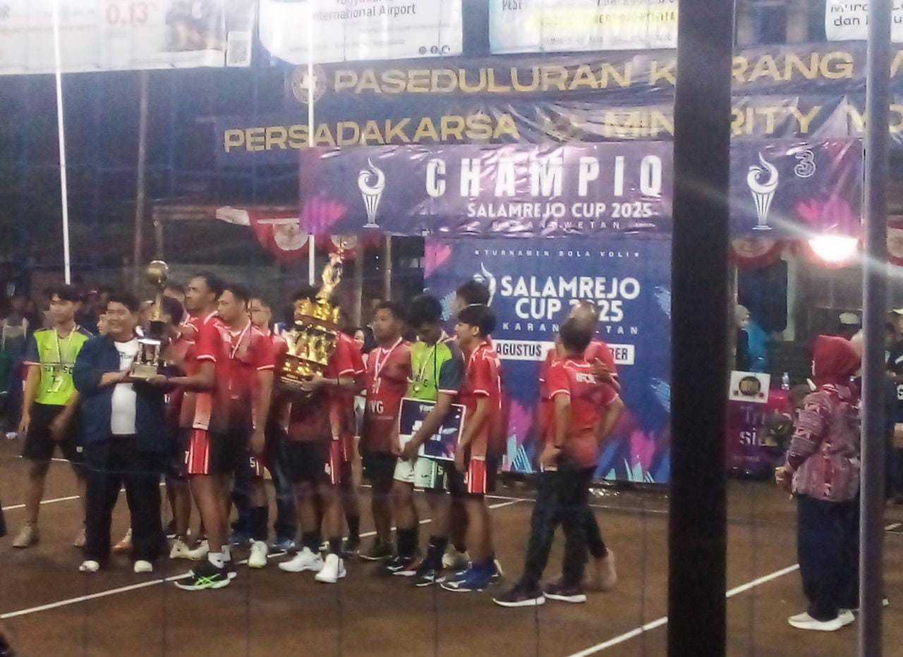 KULONPROGO-Turnamen bola voli tingkat kalurahan, Salamrejo Cup 2025 selesai dihelat, Sabtu 6 September 2025. Laga voli berlangsung sejak 23 Agustus 2025 bertempat di Padukuhan Karangwetan Salamrejo, Sentolo sebagai tuan rumah. Tampil dalam partai final sebagai juara I tim voli Padukuhan Giyoso, juara II tim voli Padukuhan Ngrandu. Sedangkan juara III tim voli Padukuhan Dhisil dan juara IV tim voli Padukuhan Kidulan.