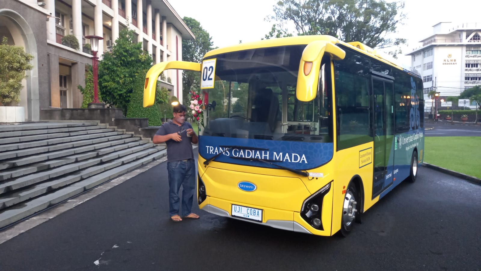 “UGM melalui Direktoral Aset akan mengoperasikan 2 (dua) unit bus listrik sebagai salah satu moda transportasi ramah lingkungan. Layanan terbaru transportasi Internal kampus berupa bus listrik dengan nama “Trans Gadjah Mada” akan beroperasi dengan 2 (dua) jalur,” kata Direktur Aset UGM Dr Ing Ir Djoko Sulistyo, beberapa waktu lalu.