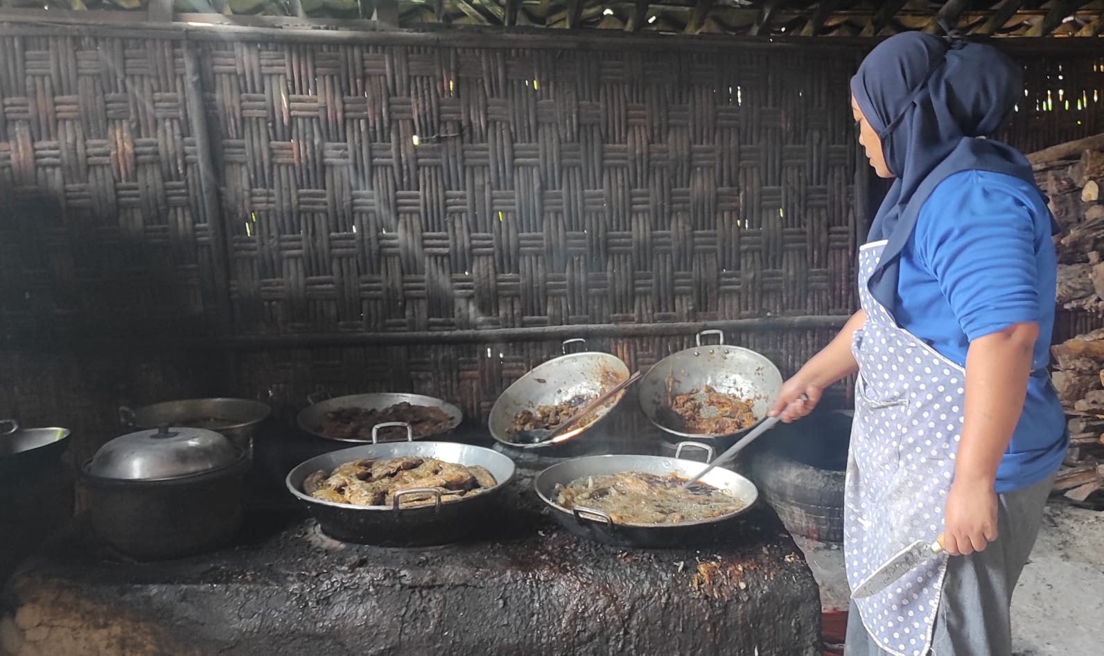 “Kami sekeluarga dari Yogya ke sini ingin sarapan nasi buntil dengan iwak kali,” ujar Siswanto yang datang bersama keluarga ke warung Mbah Sri Banjarharjo Kalibawang, Minggu (13/7/2025) pagi.