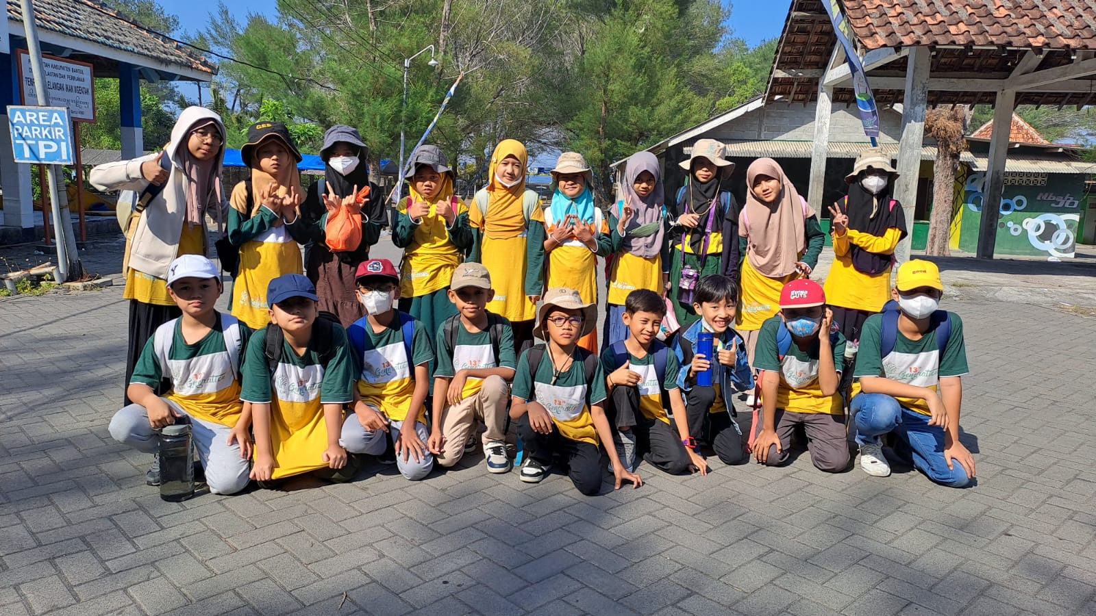 Siswa Kelas IV B SDIT LHI yang melakukan outing di PLTH Pantai Baru Bantul, Rabu (8/5/2024). (Foto: Istimewa)