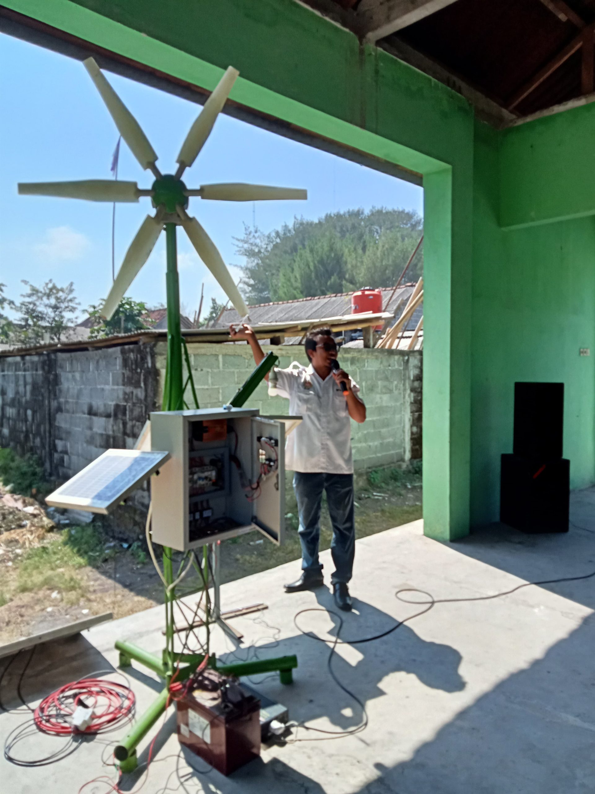 Petugas PLTH Pantai Baru memberikan penjelasan tentang pembangkit listrik menggunakan tenaga angin dan matahari. (Foto: Istimewa)