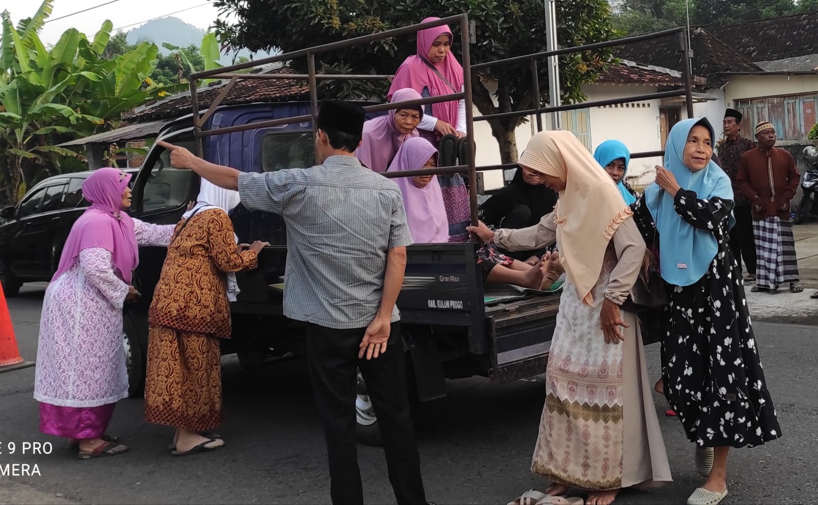 Ibu-ibu bersemangat ngaji, datang ke Pengajian Ahad Pagi, dengan naik mobil bak terbuka. (Foto: Wiradesa)