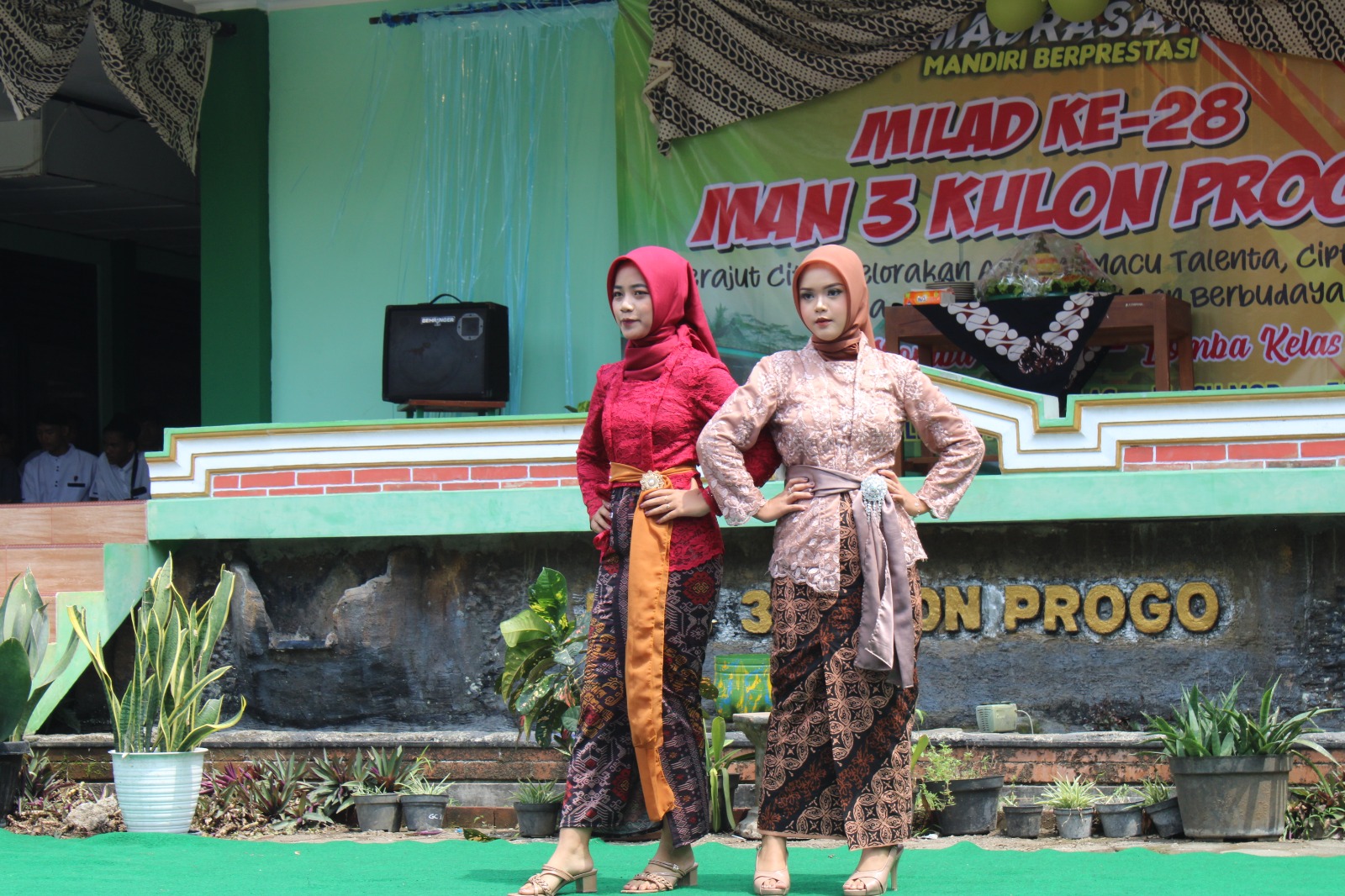 KULONPROGO – Rangkaian peringatan milad ke-28 MAN 3 Kulonprogo berlangsung meriah. Pasalnya, ada kegiatan ‘fashion show’ busana muslimah karya para siswi. Dalam kegiatan itu, siswi bersangkutan selain sebagai pembuat juga berperan menjadi model pakaian yang ia buat sendiri.