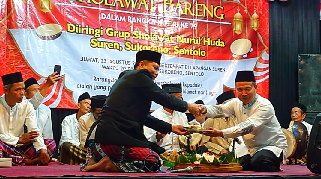 KULONPROGO-Dalam rangka Peringatan HUT ke-79 Kemerdekaan RI warga Padukuhan Suren Kalurahan Sukoreno Kapanewon Sentolo Kulonprogo menyelenggarakan acara sholawatan bersama Majelis Sholawat Nurul Huda, bertempat di Lapangan Voly Suren, Jumat 23 Agustus 2024.