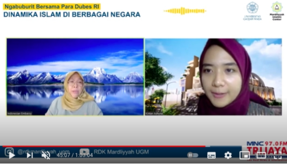 Mardliyyah Islamic Center UGM mengadakan “Ngabuburit Bersama Dubes” yang membahas hal-hal kontekstual negara di Amerika Latin terkait kondisi sosial ekonomi selama pandemi dan bagaimana berjalannya aktivitas umat muslim di negara setempat. Mengundang Duta Besar RI untuk Kuba, Nana Yuliana, dan Duta Besar RI untuk Argentina, Niniek Kun Naryatie. UGM menyajikan tayangan diskusi yang disiarkan langsung oleh MNC Trijaya FM dan dapat ditonton ulang di YouTube Universitas Gadjah Mada.
