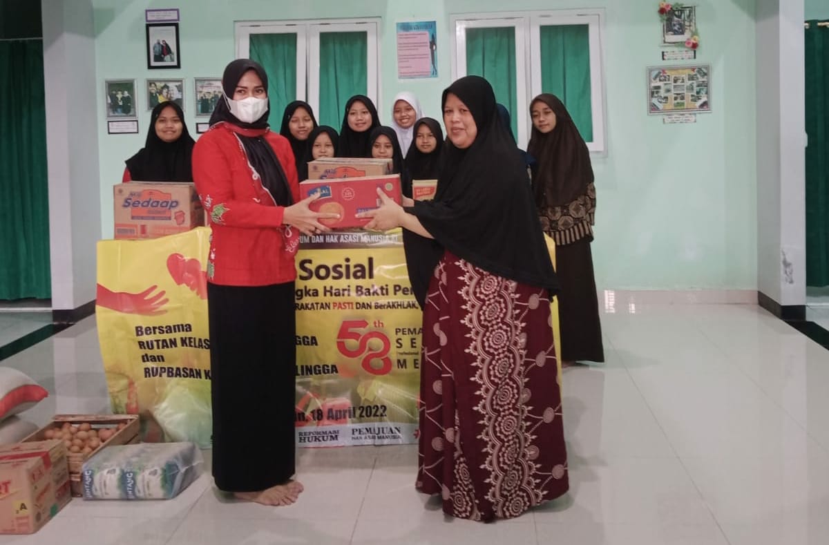 PURBALINGGA – Rumah Penyimpanan Benda Sitaan Negara (Rupbasan) Purbalingga bersama Rumah Tahanan Negara (Rutan) Kelas IIB Purbalingga memberikan bantuan sosial berupa sembako, ke Panti Asuhan Siti Djamilah Kelurahan Purbalingga Wetan, Kecamatan Purbalingga, Senin 18 April 2022.