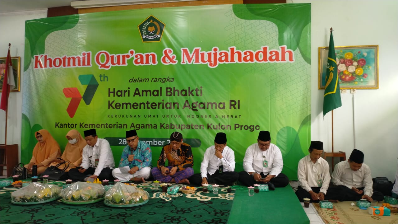 KULONPROGO – Kankemenag Kulonprogo menggelar khatmil Quran dan mujahadah menyambut hari amal bhakti (HAB) ke-77.