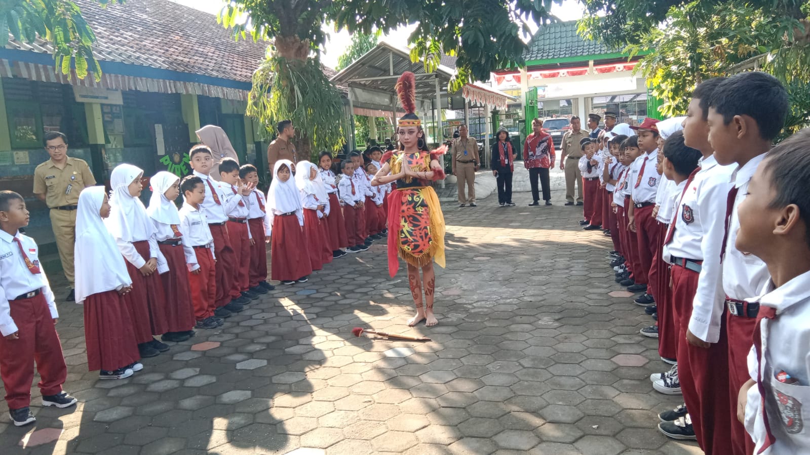 Tim asesor Badan Akreditasi Nasional SD/MI DIY disambut para guru dan siswa SD Negeri Puren, Condongcatur. (Foto: Wasana)
