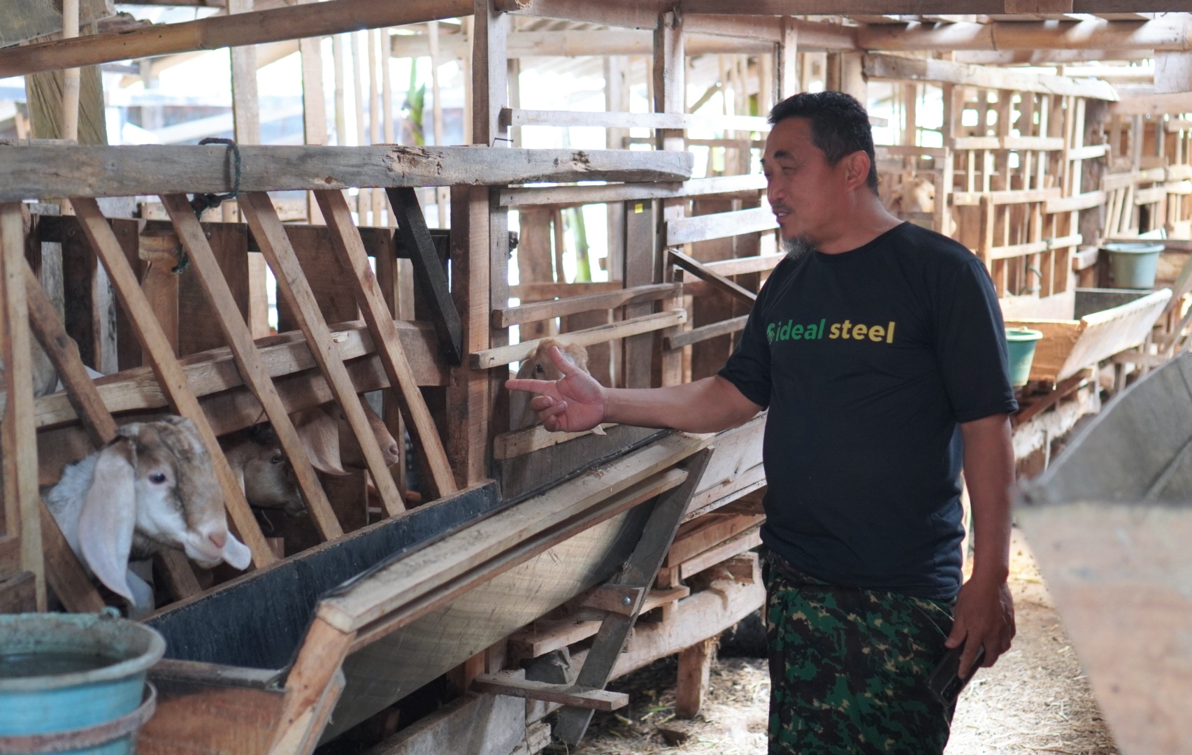 Susmono di kandang kambingnya, Selasa (22/8/2023). (Foto: Wiradesa)