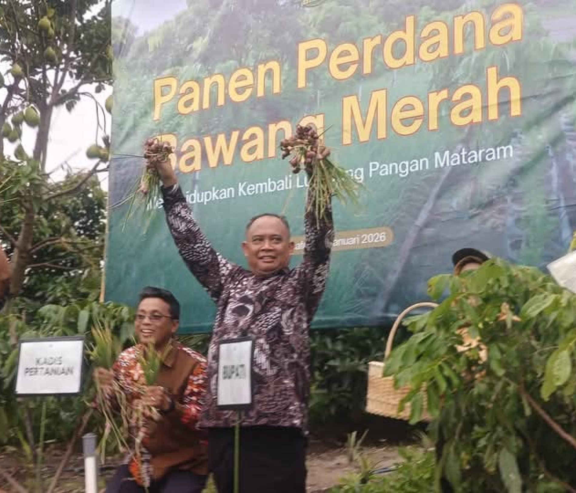 SLEMAN-Bupati Sleman Harda Kiswaya menghadiri kegiatan panen perdana bawang merah di lahan “Sugih Waras Farm”…