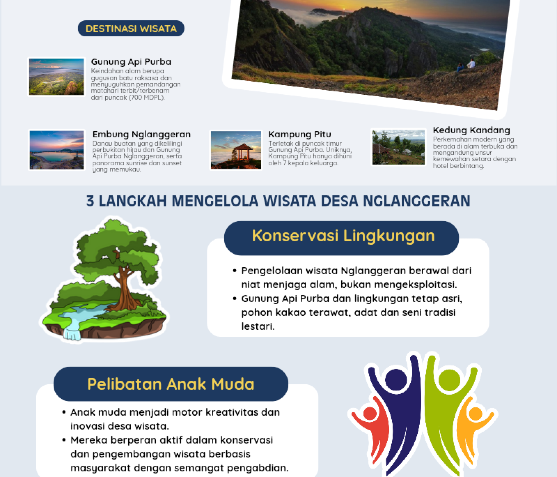 Ada tiga langkah dalam mengelola wisata desa Nglanggeran, Patuk, Gunungkidul, Daerah Istimewa Yogyakarta. Yaitu, konservasi lingkungan, pelibatan anak-anak…