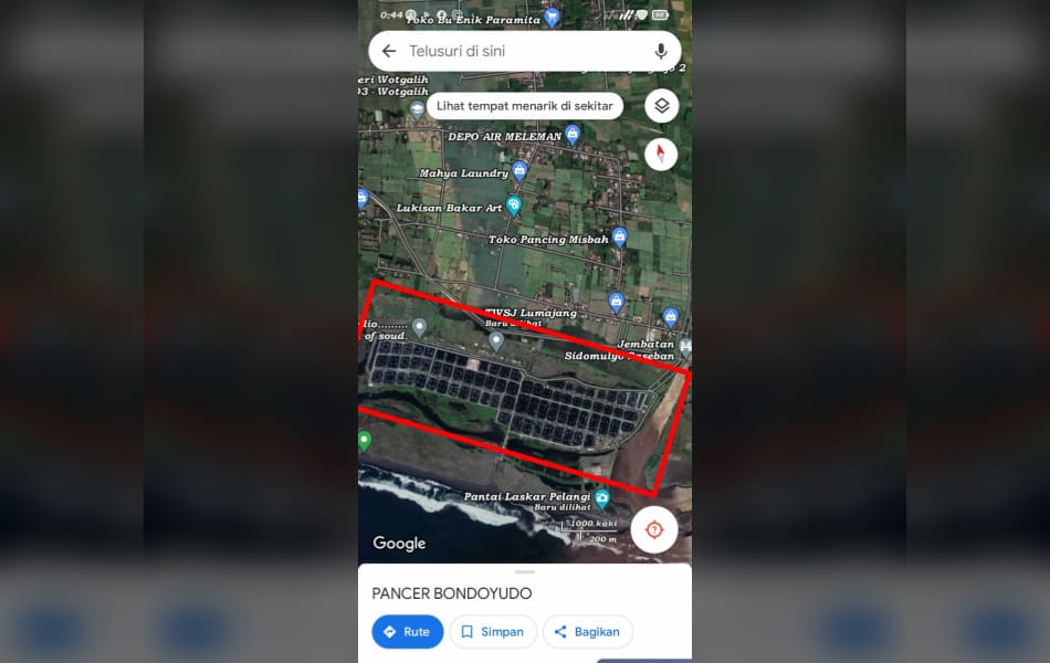 Tambak udang di sepanjang pantai wilayah Jember dan Lumajang, Jawa Timur. (Foto: Istimewa)