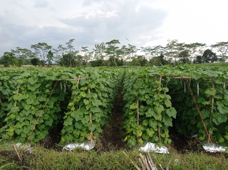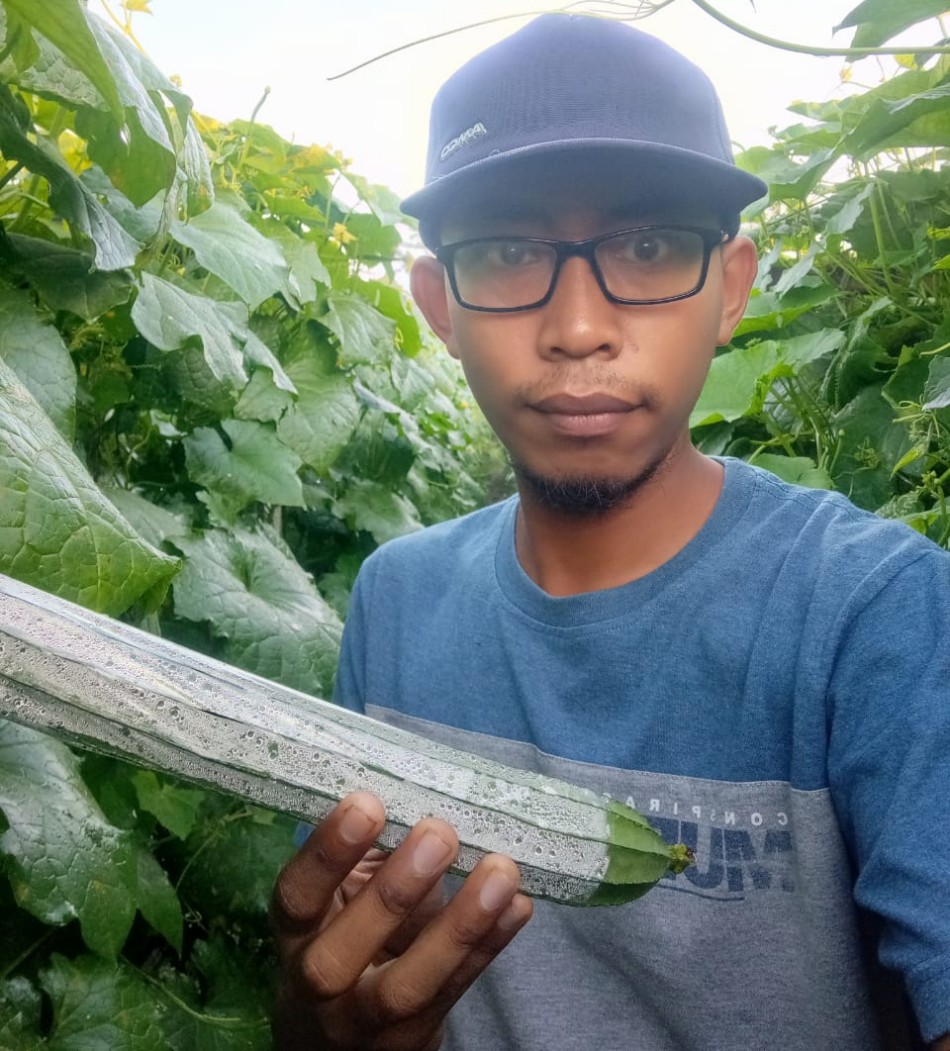 Meski pertama kali menanam gambas, Riski bisa dikatakan sukses. Karena tanaman tersebut berbuah lebat dan bisa meraup keuntungan besar. (Syarifuddin)
