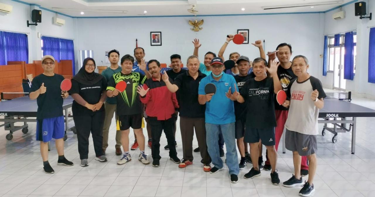 YOGYAKARTA – Tim tenis meja Persatuan Wartawan Indonesia (PWI) DIY melakukan tanding persahabatan dengan tim tenis meja PDAM Tirtamarta Kota Yogyakarta di Graha Tirtamarta komplek kantor PDAM Tirtamarta, Jumat (9/6/2023).