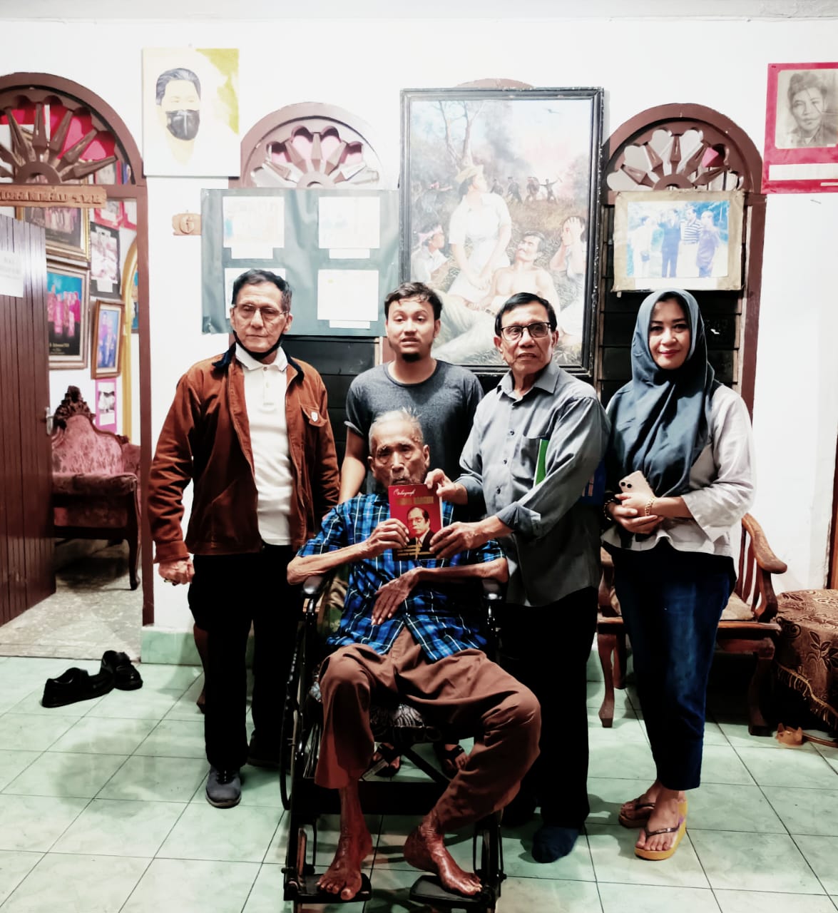 Hendry Ch Bangun (kedua dari kanan) saat mengunjungi Museum Perjuangan Pers Medan yang didirikan TW Muhammad (duduk di kursi roda). (Foto: Dok Hendry Ch Bangun)
